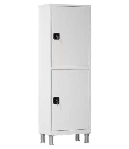 Шкаф медицинский металлический двухсекционный одностворчатый ШМ-03-МСК с ригельными замками и регулируемыми опорами предназначен для размещения и хранения лекарственных средств, перевязочных материалов, инструментов, медицинских расходных материалов и других изделий медицинского назначения.