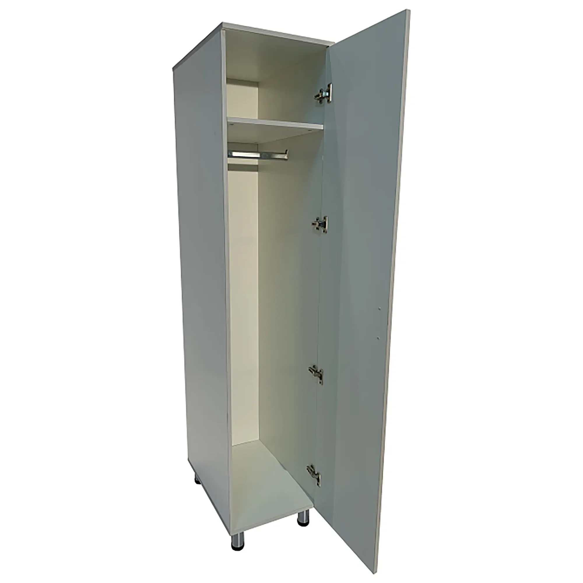 - Оснащен полкой для головных уборов, штангой для одежды, дверцей и регулируемыми по высоте ножками.