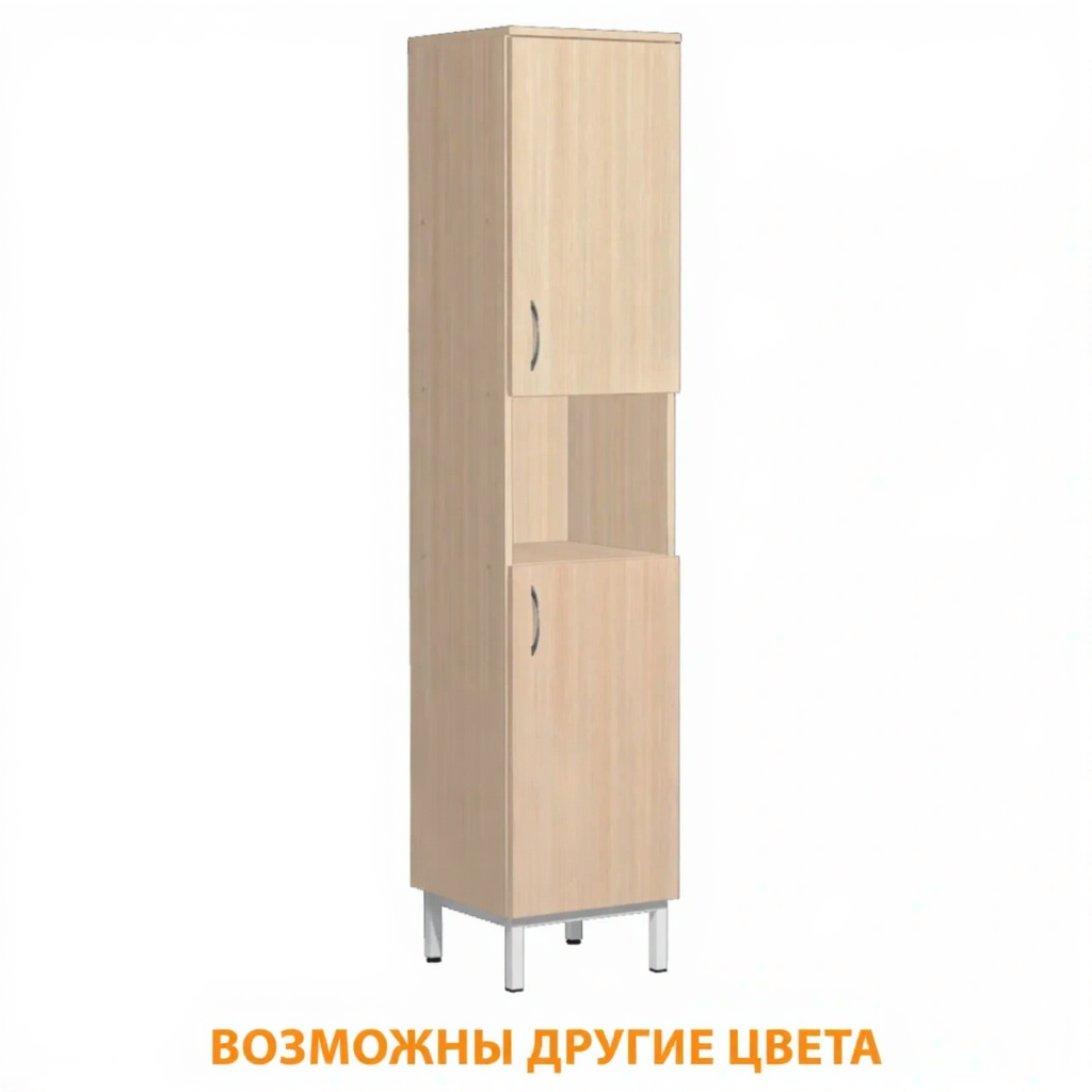 - Наполнение: два закрытых отдела, 2 дверки, внутри по 1 полке, разделен открытой по середине нишей.