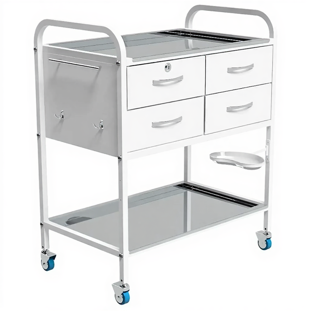 Стол инструментальный процедурный специальный СИПС-Н (полки нерж. сталь) — это многофункциональный процедурный стол, предназначенный для размещения инструмента, лекарственных препаратов и приборов в процедурных, смотровых и перевязочных кабинетах медицинских учреждений. Модель имеет каркас из профильной стальной трубы, полки из нержавеющей стали, выдвижную полку, почкообразный лоток и ящик с замком.