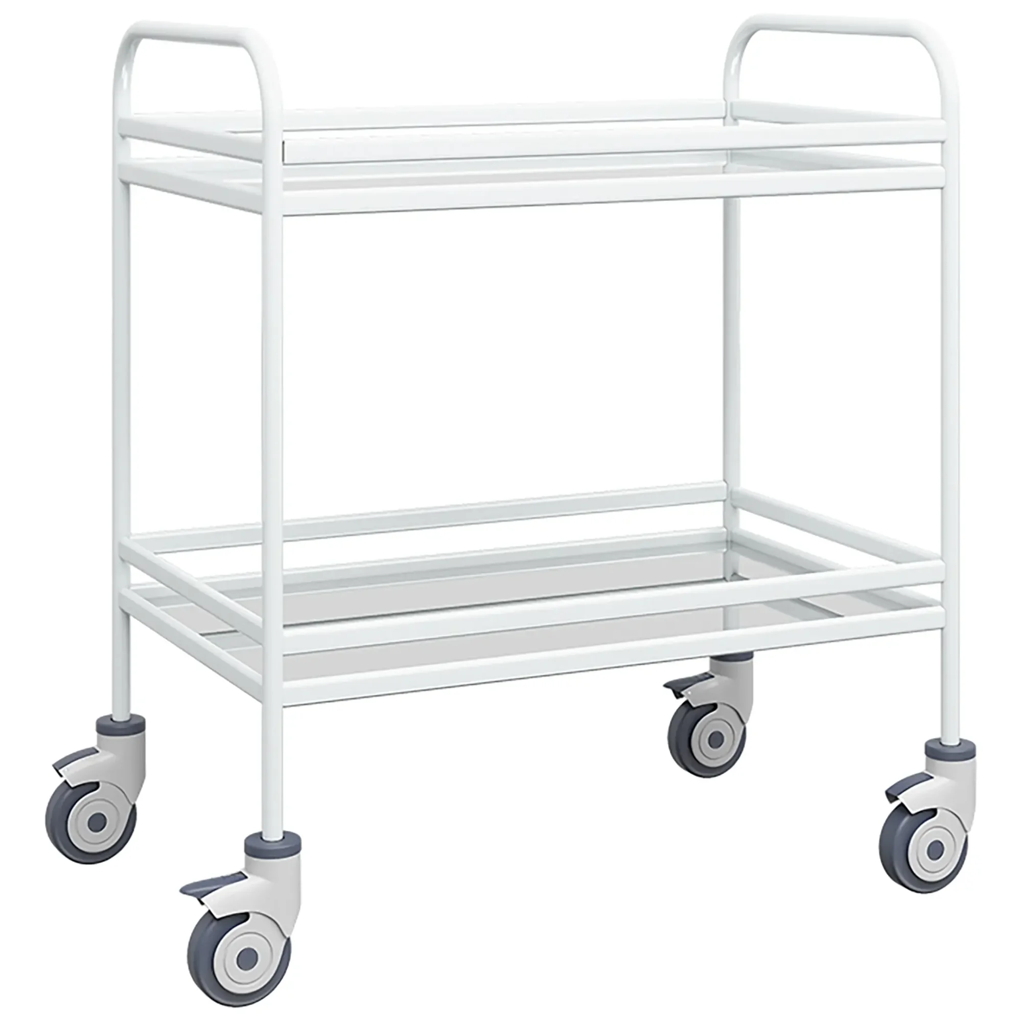 - колеса поворотные, самоориентирующиеся, диаметром 100 мм, комплектуются надёжной стальной вилкой с прецизионным радиально-упорным подшипником, ободом из полипропилена и шинкой из серого полиуретана, не оставляющего следов на полу (два колеса – с индивидуальным тормозным устройством).