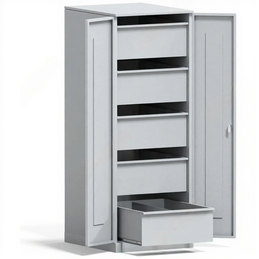 - Увеличенная вместимость в компактном корпусе — пять глубоких ящиков предоставляют существенный объем для хранения обширной картотеки, занимая при этом минимальную площадь. Это особенно важно для аптек, процедурных кабинетов и других помещений с ограниченным пространством.