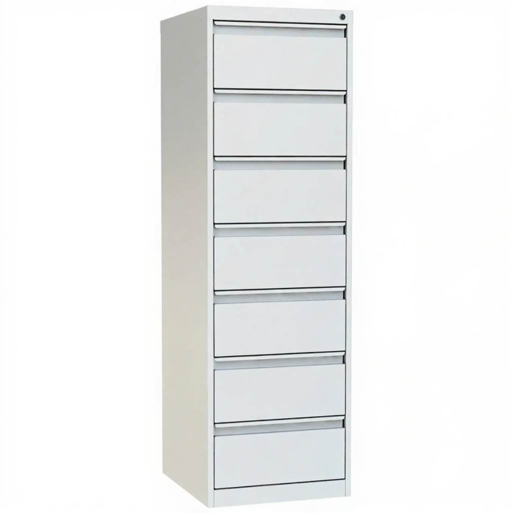 - Эргономичная компоновка с двумя колоннами — семь выдвижных ящиков, расположенных в две колонны (4 и 3 ящика), обеспечивают удобный доступ и рациональное использование пространства как по высоте, так и по ширине. Такая конструкция облегчает поиск и работу с картотекой.