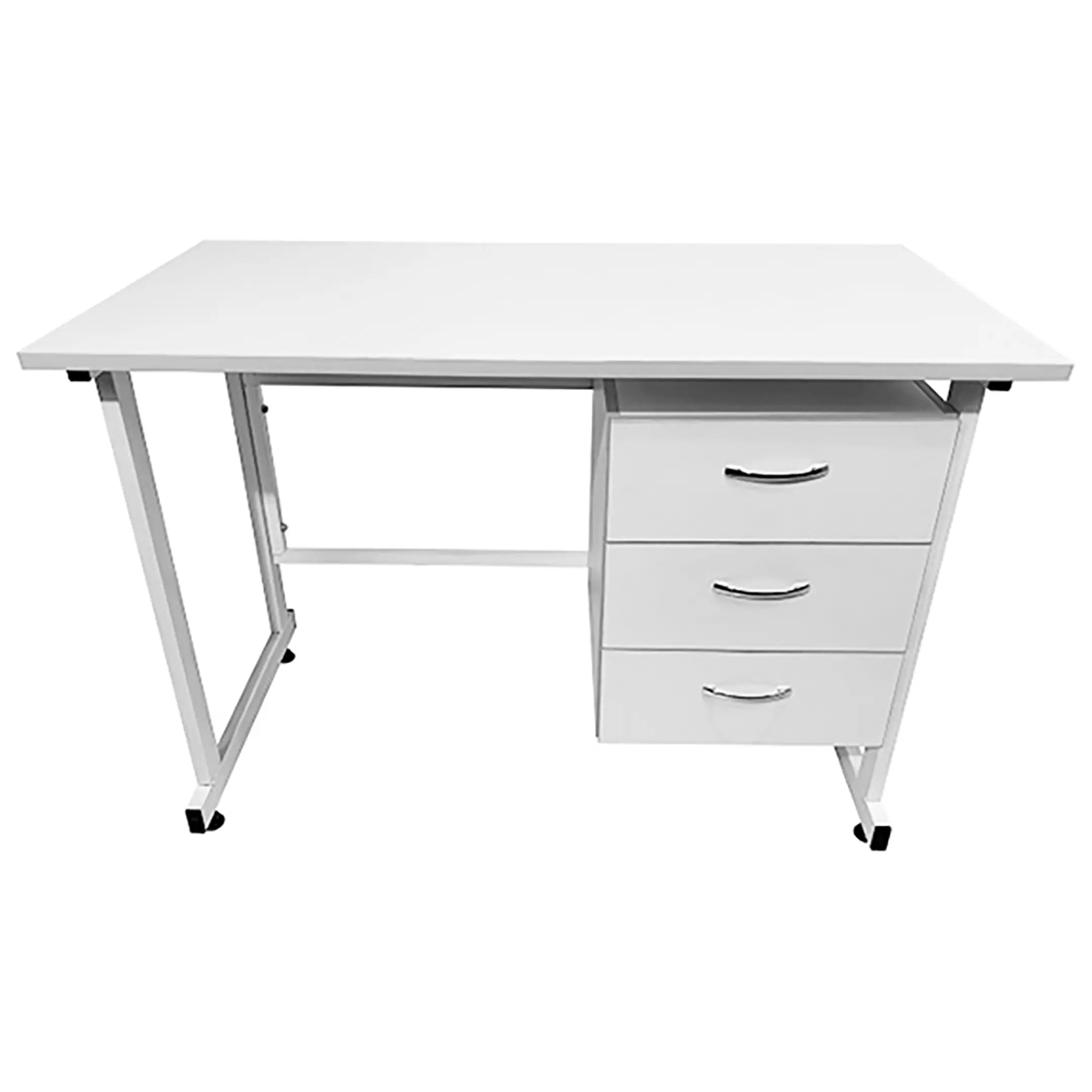 Стол лабораторный СЛ 12.004 (белый) — это надежное и функциональное решение для организации рабочего места сотрудников в лабораториях. Модель оснащена подвесной тумбой с тремя выдвижными ящиками. Каркас выполнен из стального профиля, столешница из ЛДСП толщиной 22 мм.