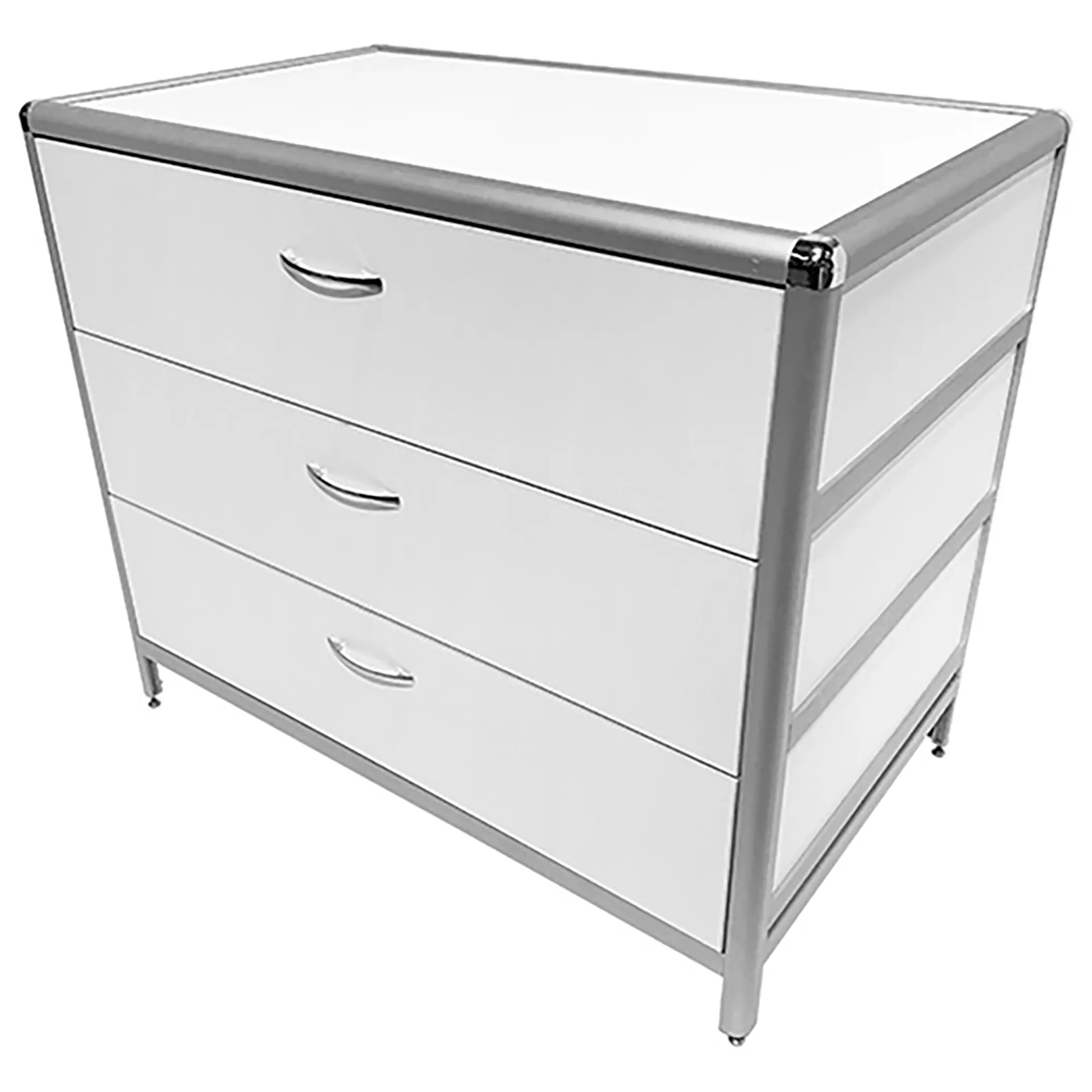 Стол-тумба лабораторная MED 12.010al (белый) — это функциональное решение для хранения лабораторного инвентаря, приборов и материалов в лабораториях и медицинских учреждениях. Модель оснащена тремя выдвижными ящиками, расположенными под столешницей, размером 434х70х895 мм. Каркас выполнен из алюминиевого профиля, столешница из ЛДСП толщиной 16 мм.