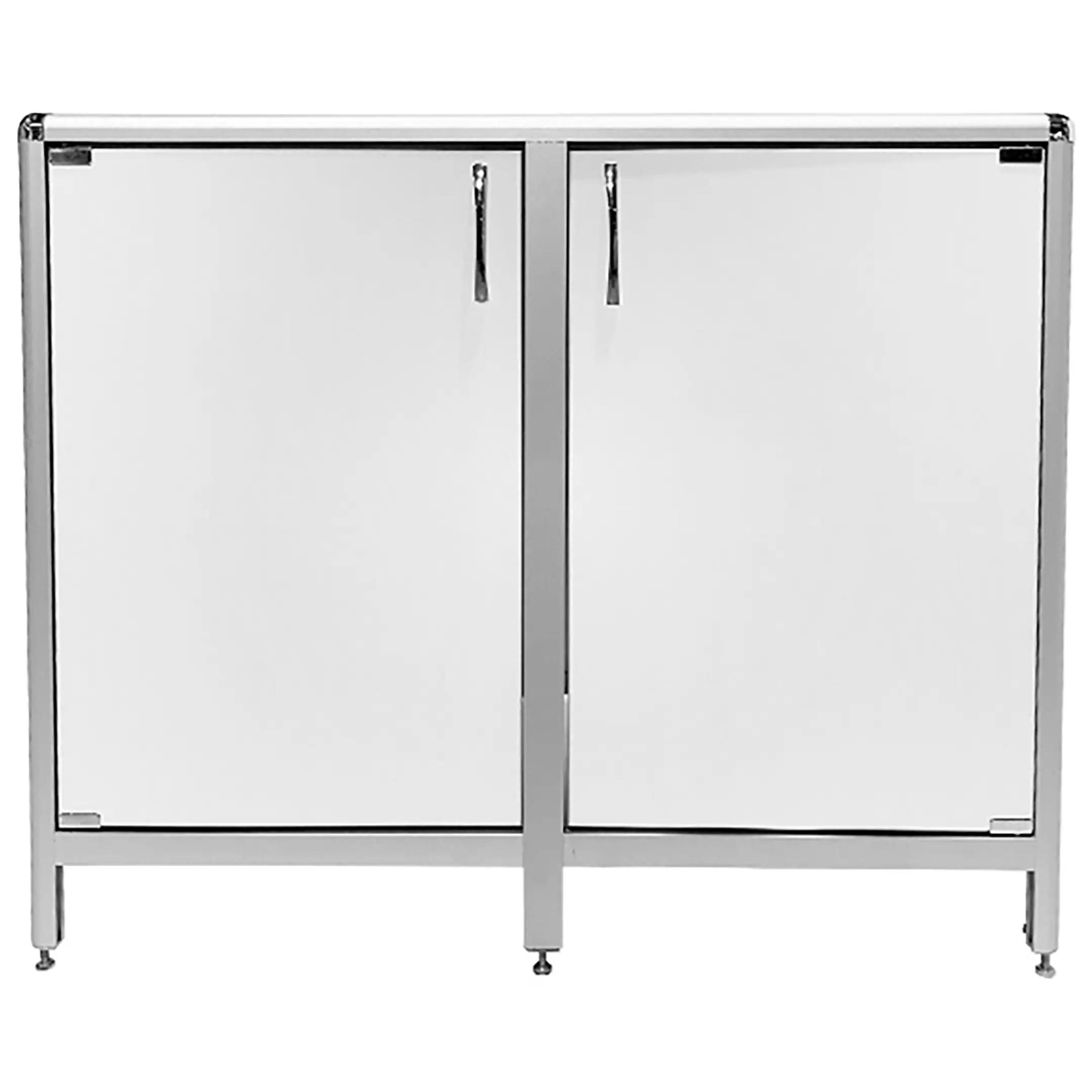 Стол-тумба лабораторная MED 12.011al (белый) — это функциональное решение для хранения лабораторного инвентаря, приборов и материалов в лабораториях и медицинских учреждениях. Модель оснащена двумя тумбами с распашными дверками и полками внутри (полки 463х545 мм). Каркас выполнен из алюминиевого профиля, столешница из ЛДСП толщиной 16 мм.