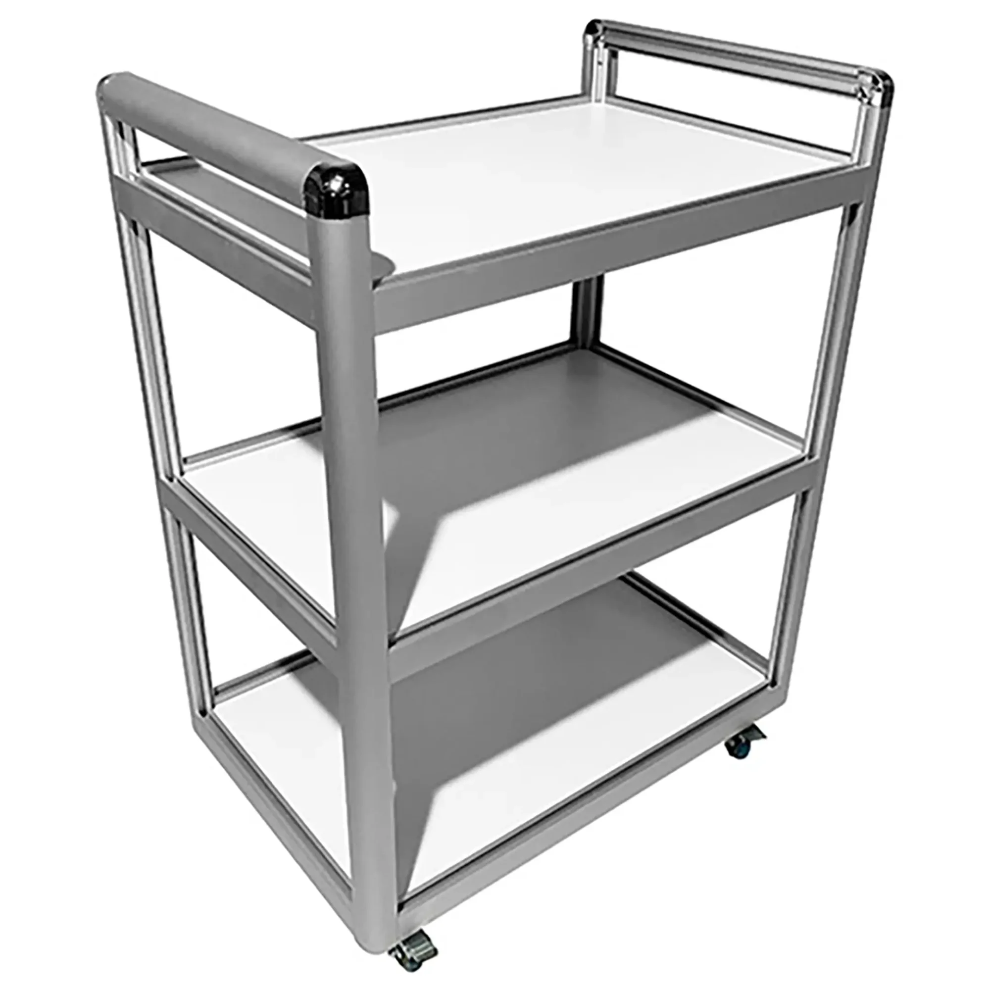 Столик лабораторный подкатной MED 14.001al (белый) является идеальным решением для временного размещения и удобного перемещения инструментов, предметов или приборов в медицинских учреждениях и лабораториях. Модель оснащена тремя полками из ЛДСП и двумя удобными ручками для транспортировки. Каркас выполнен из алюминиевого профиля.
