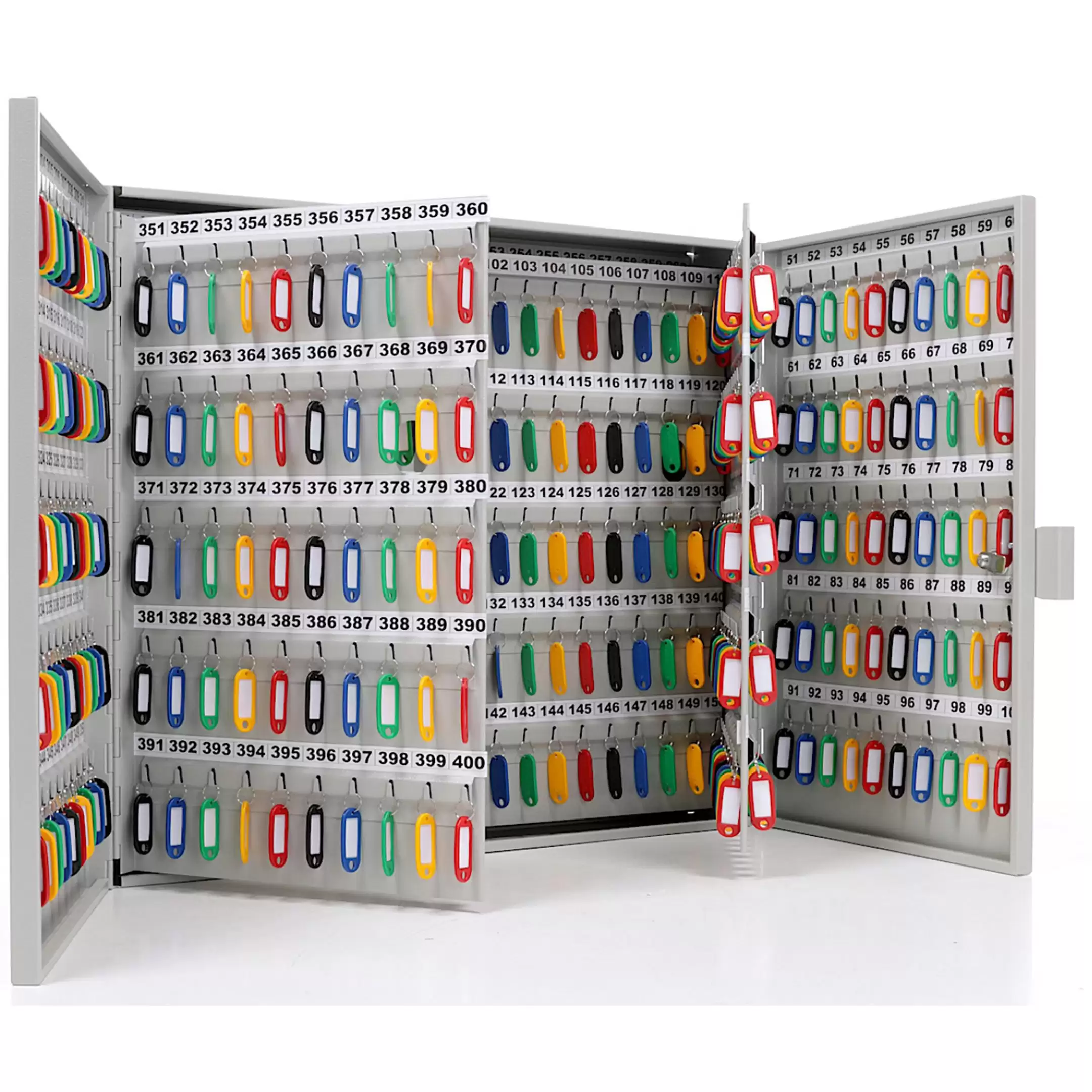 Ключница KEY-600 (с брелками) — это масштабная и профессиональная система для централизованного управления, учета и хранения чрезвычайно большого количества ключей на особо крупных объектах, в головных офисах управляющих компаний, на промышленных гигантах и в распределенных сетях. Модель представляет собой крупногабаритный металлический шкаф (часто напольный или модульный), где обозначение «KEY-600» прямо указывает на её экстремальную вместимость (600 ключей), а комплектация «с брелками» включает полный промышленный набор номерных держателей. Конструкция предназначена для создания главного узла ключевого хозяйства, обеспечения безусловного порядка, максимальной безопасности и интеграции в сложные системы электронного документооборота и контроля доступа.