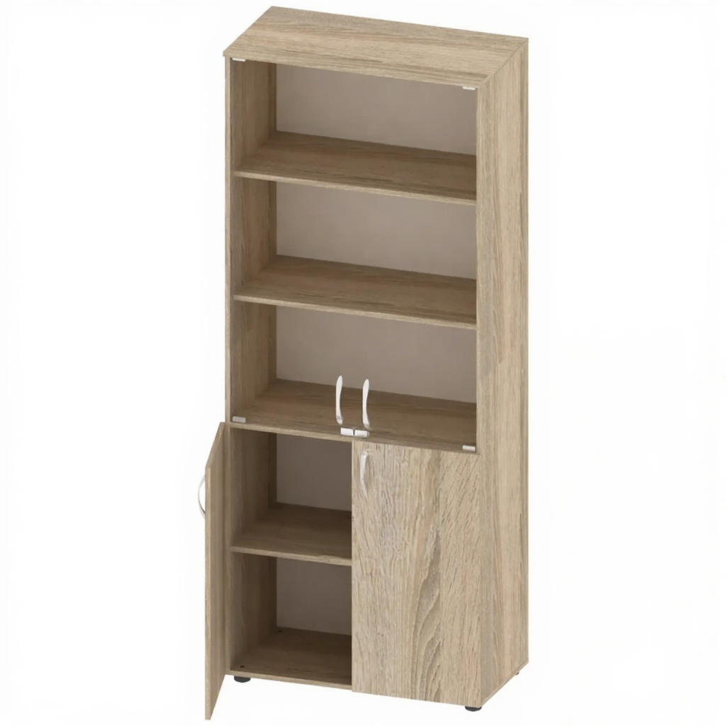 Шкаф для документов канцелярский, стекло, 800 мм, ШК-АД-117-2 — это вместительное и эстетичное решение для хранения документов, книг и канцелярских принадлежностей в образовательных, офисных и административных учреждениях. Модель оснащена стеклянными вставками без рамы, изготовлена из качественной ЛДСП толщиной 16 мм с регулируемыми опорами.
