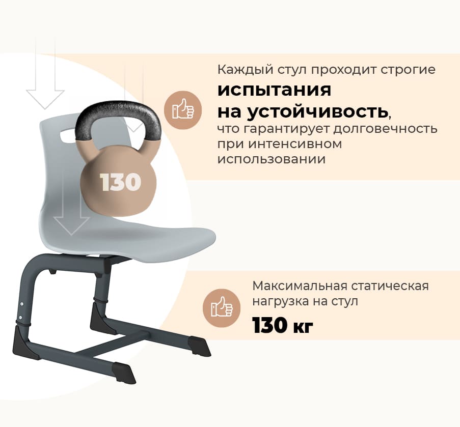 - Пластиковое сиденье и спинка — долговечные, лёгкие и легко очищаемые поверхности.