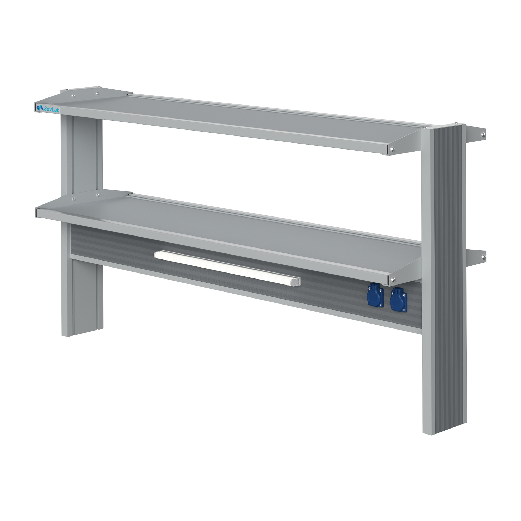 Технологический островной низкий стеллаж Mod. 1500 ТСОн — это специализированное лабораторное оборудование, устанавливаемое на рабочую поверхность островных столов и предназначенное для размещения лабораторных приборов, посуды, инструментов и расходных материалов. Модель оснащена двумя горизонтальными полками, блоком электророзеток и светодиодными светильниками для местного освещения рабочей зоны.