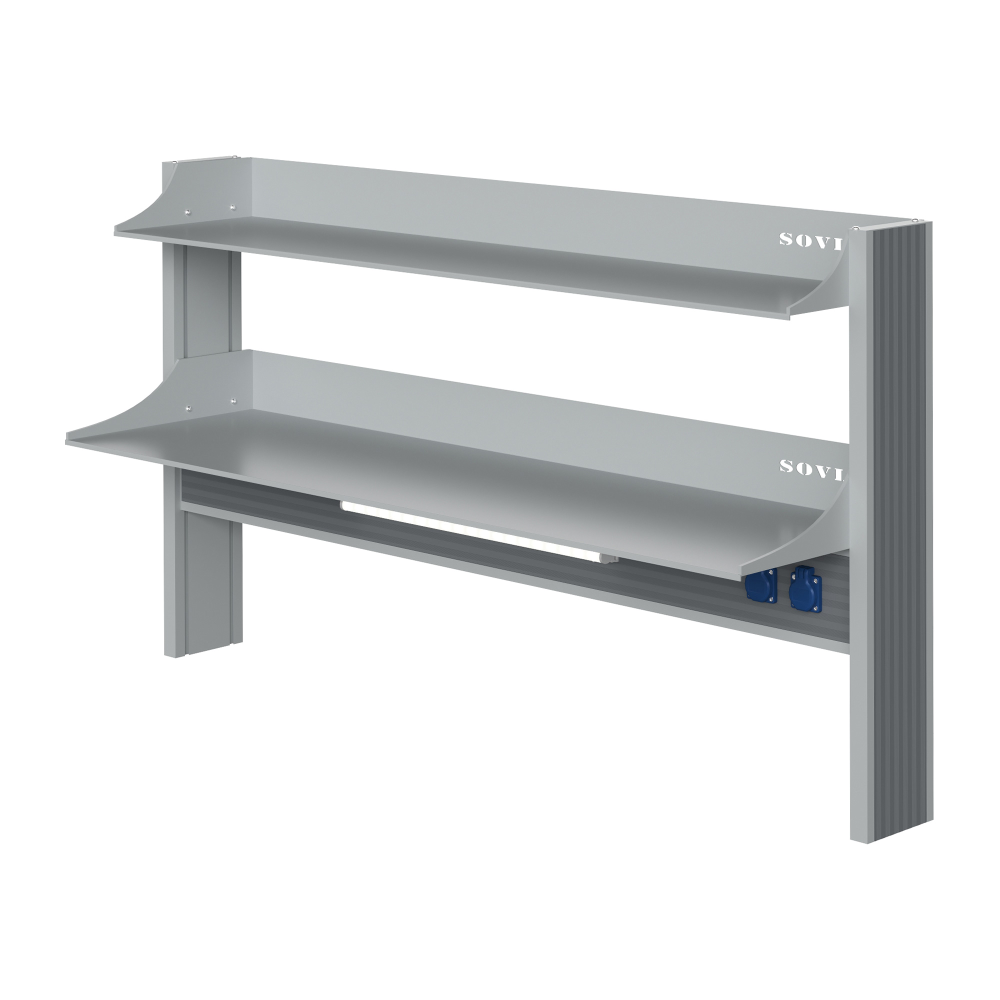 Технологический стеллаж для приборов низкий для пристенного стола Mod. 1500 ТСПРн — это специализированное лабораторное оборудование, устанавливаемое на пристенные столы и предназначенное для размещения лабораторных приборов, оборудования и принадлежностей. Модель оснащена тремя металлическими полками с высокими бортами, блоком электророзеток повышенной защиты и светодиодным светильником для местного освещения рабочей зоны.