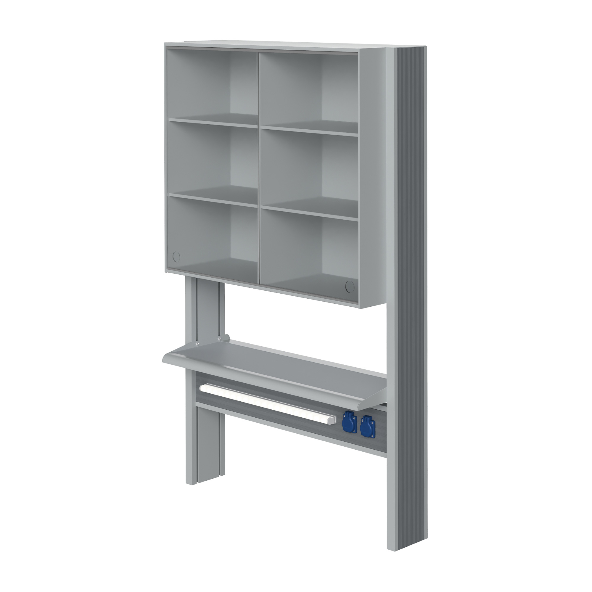 Технологический стеллаж со шкафом 750 мм для пристенного стола Mod. 900 ТСПШ-75 — это специализированное лабораторное оборудование, устанавливаемое на пристенные столы и предназначенное для хранения лабораторной посуды, приборов, реактивов и принадлежностей. Модель оснащена вместительным шкафом с раздвижными стеклянными дверями, полками, блоком электророзеток повышенной защиты и светодиодным светильником для местного освещения рабочей зоны.