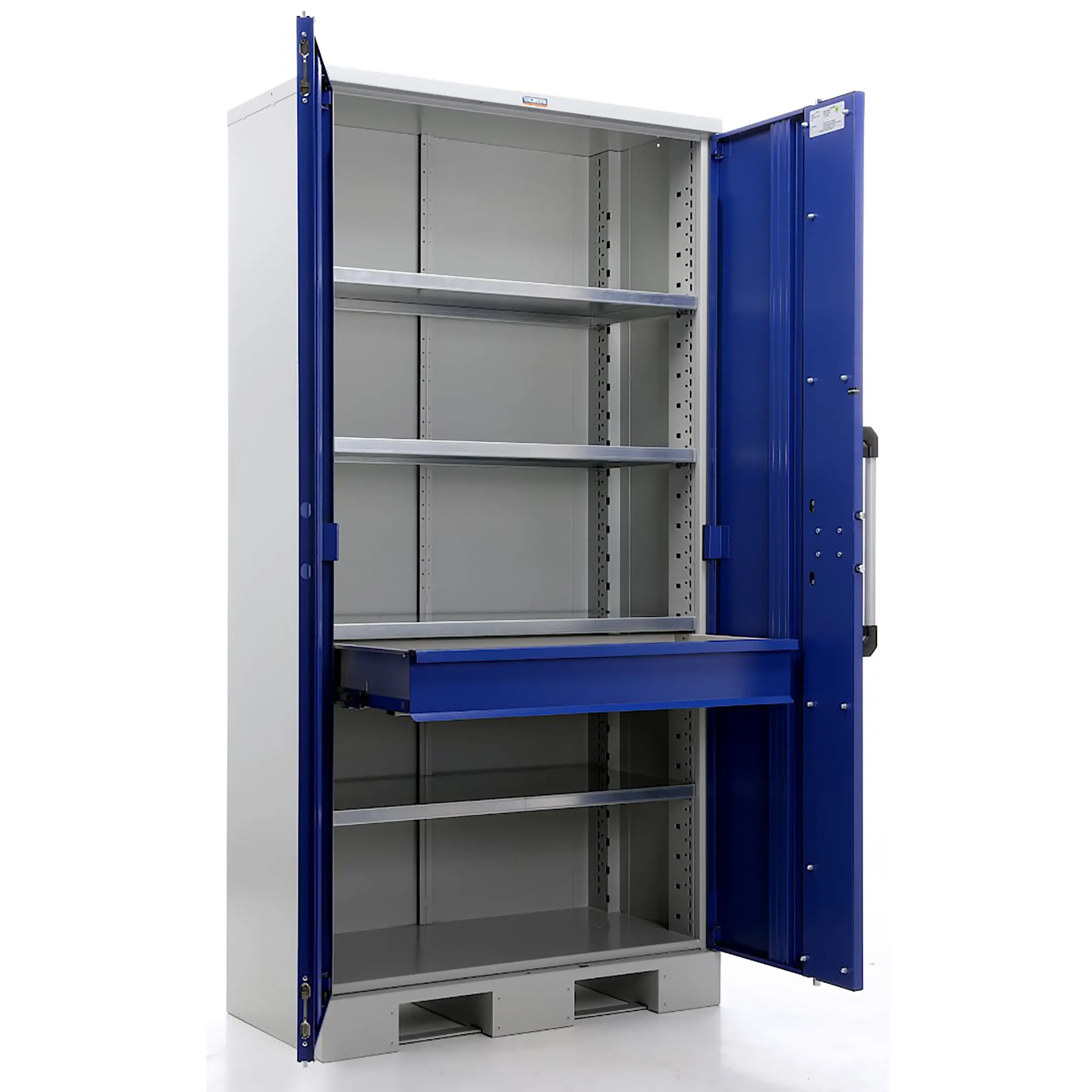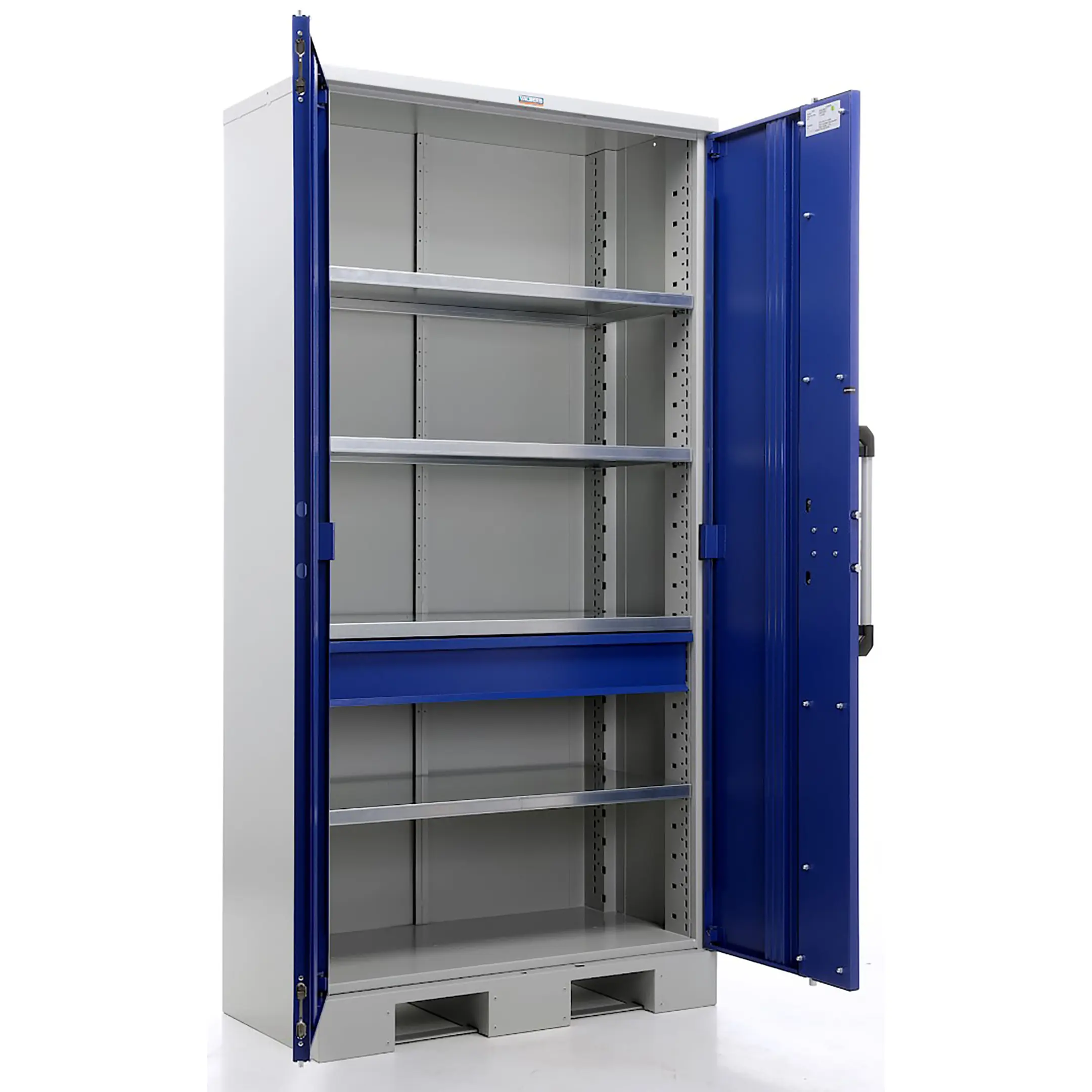 - Максимальная защита и безопасность — модель оснащена усиленной системой запирания (надежный замок, часто с несколькими точками фиксации), обеспечивающей высокий уровень защиты дорогостоящего инструментального парка от хищения и несанкционированного доступа. Плотные дверцы защищают оснастку от цеховой пыли, стружки и влаги.