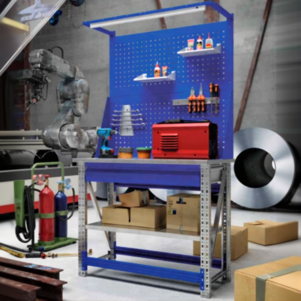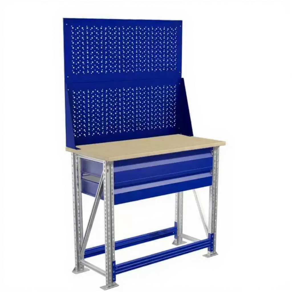 - Компактные размеры — столешница 1000х500 мм позволяет разместить верстак даже в небольших помещениях.