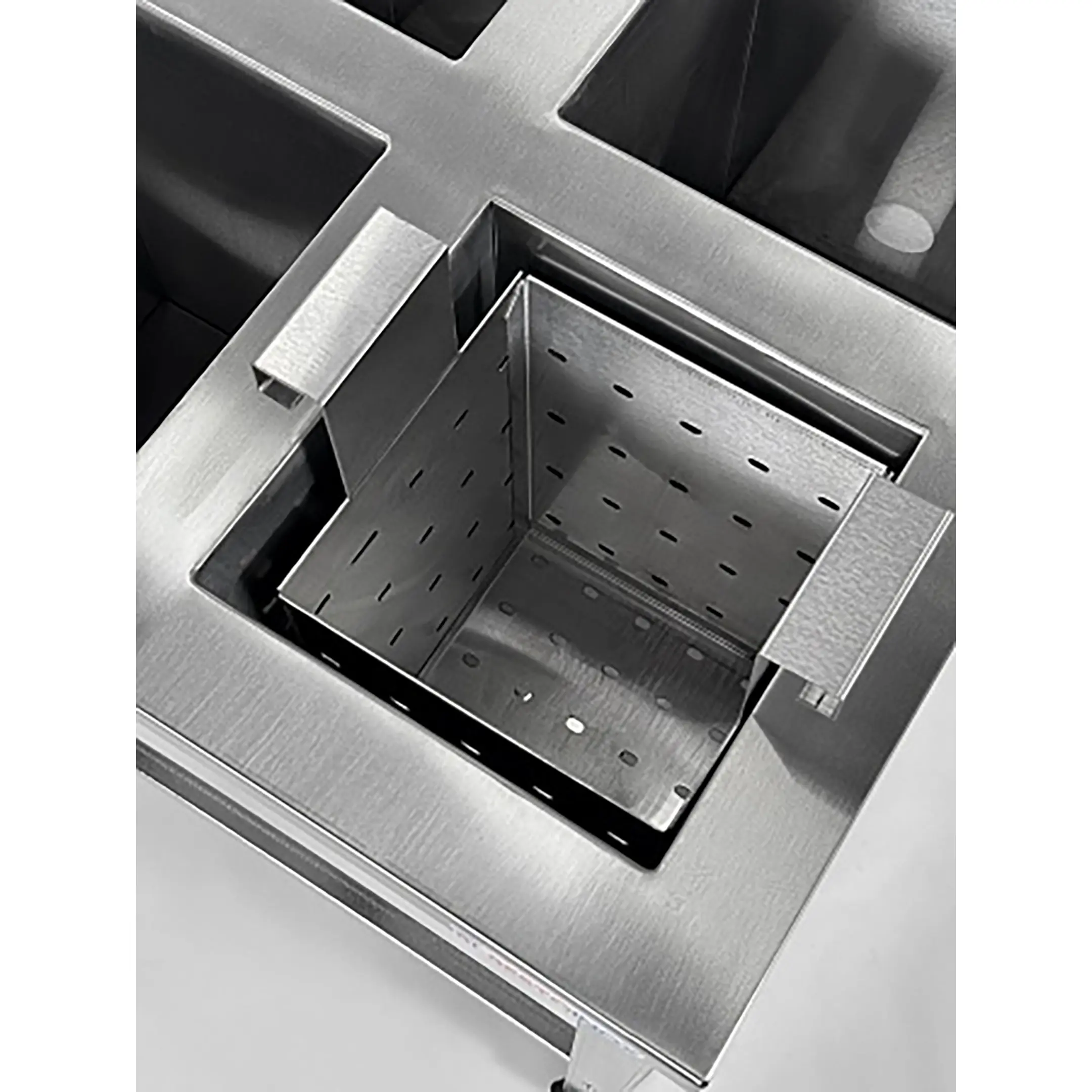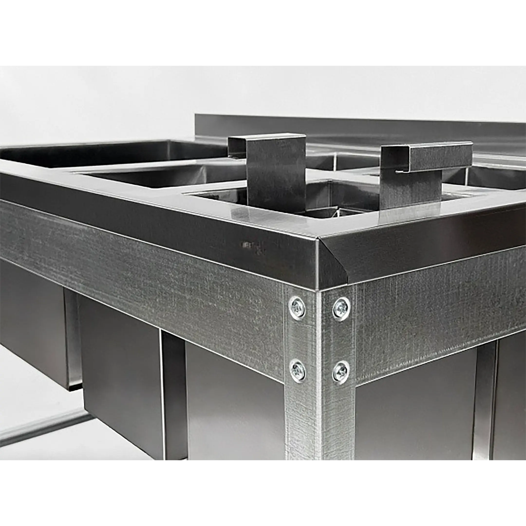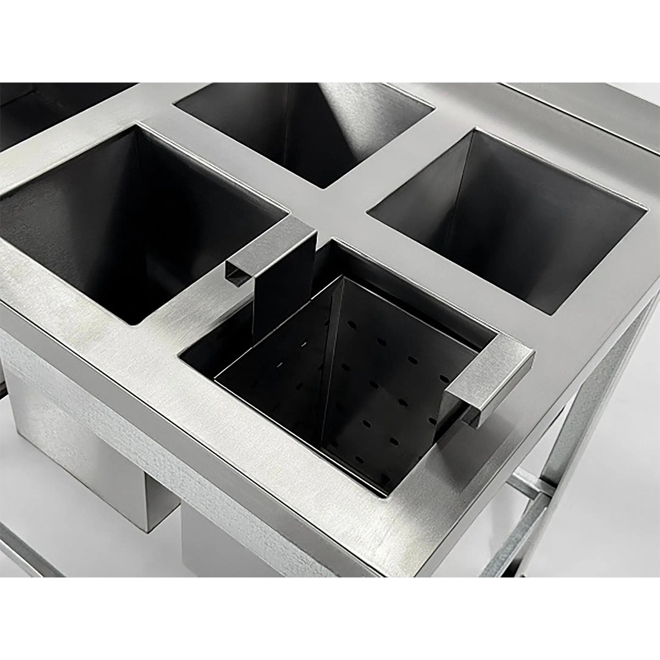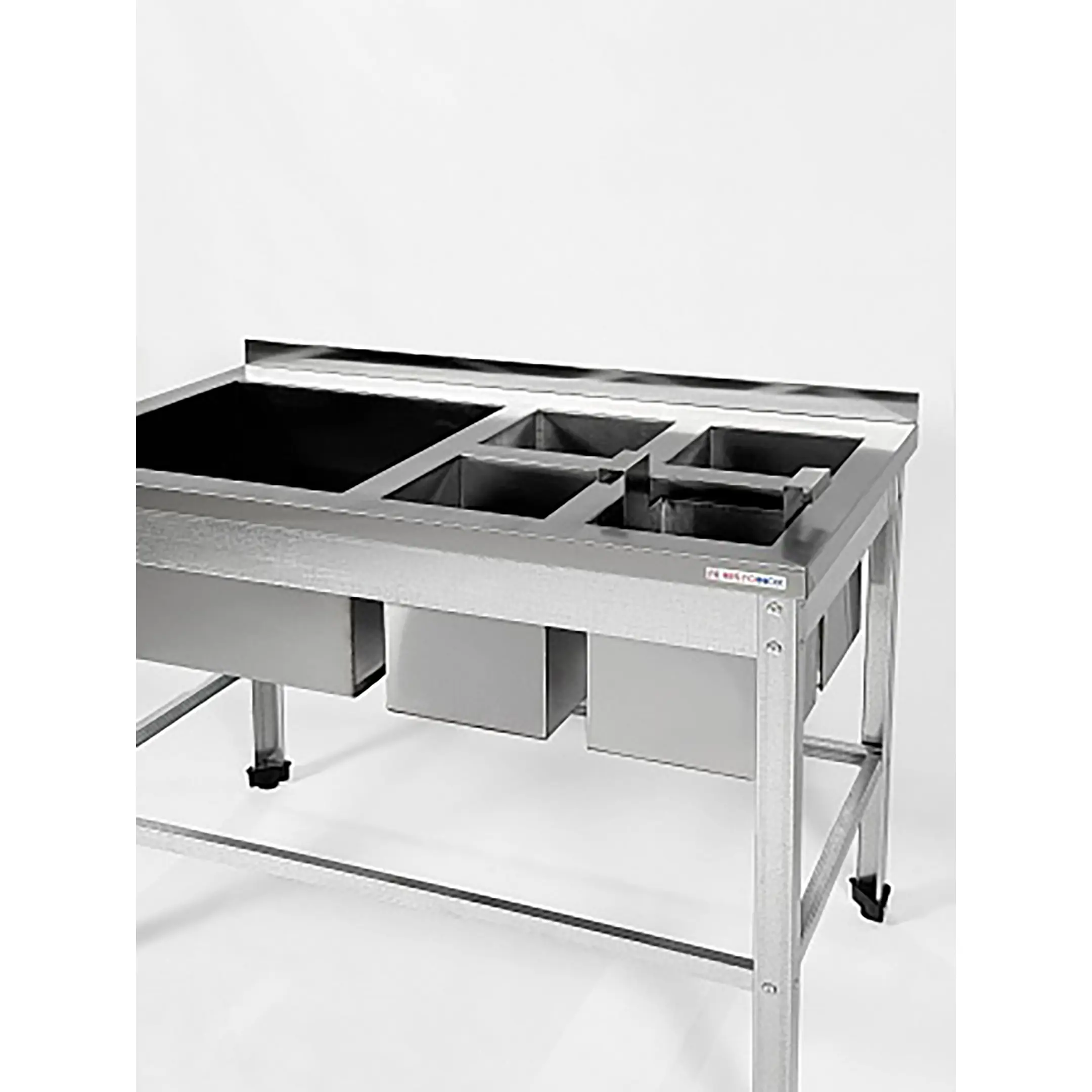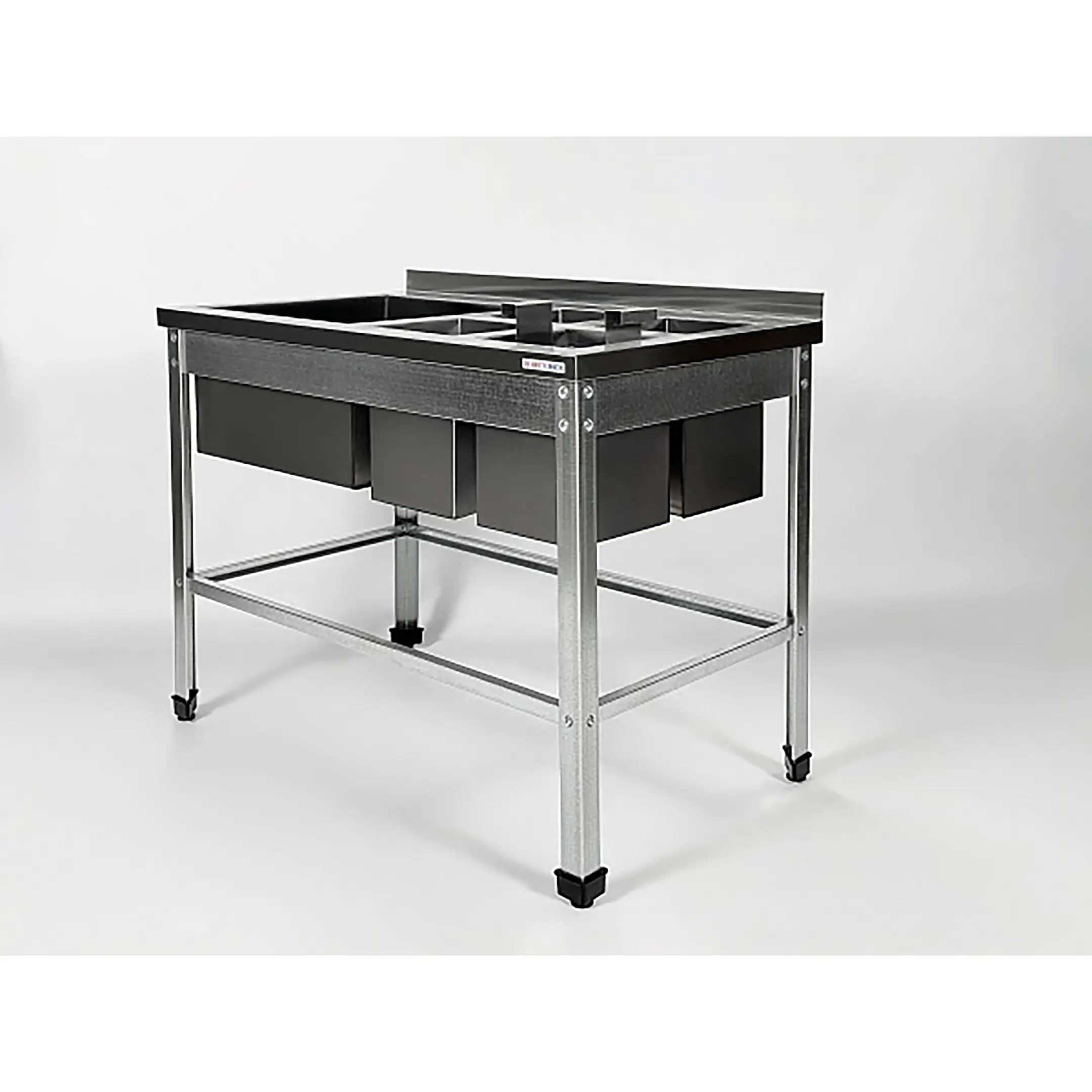 - 2 мойки из нержавеющей стали Aisi 430: ВМСЯ-1/5-Б-ЭЦ - 4 емкости по 200х200х300 мм; ВМС-1/5-Б-ЭЦ - 1 емкость 450х450х300 мм;