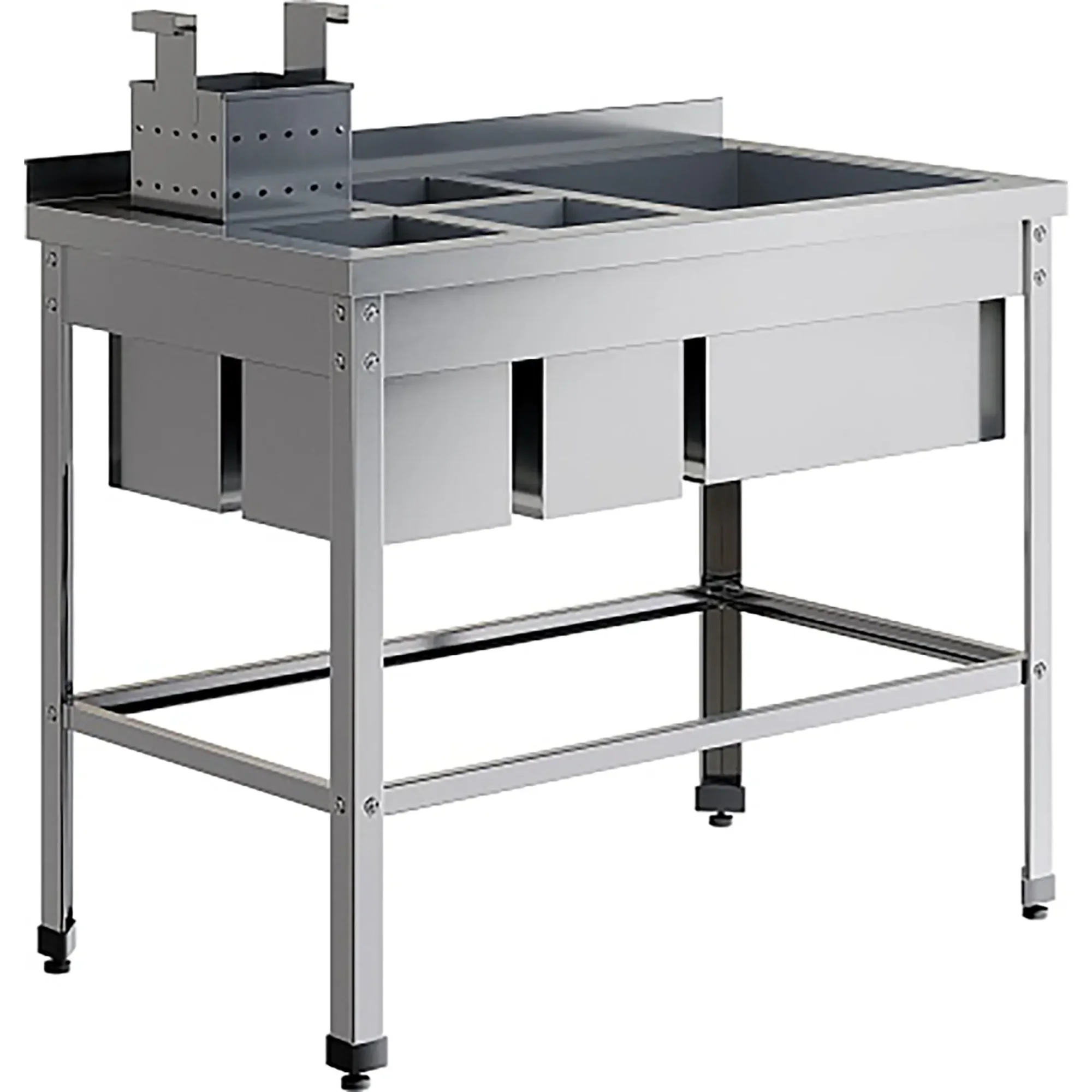 Ванна моечная двойная для мойки яйц ВМСЯ-1/5-Б-ЭЦ+ВМС-1/5-Б-ЭЦ разработана для применения в моечных отделениях предприятий общепита и торговли различного формата, пищевых производств и пищеблоков для мытья яиц.