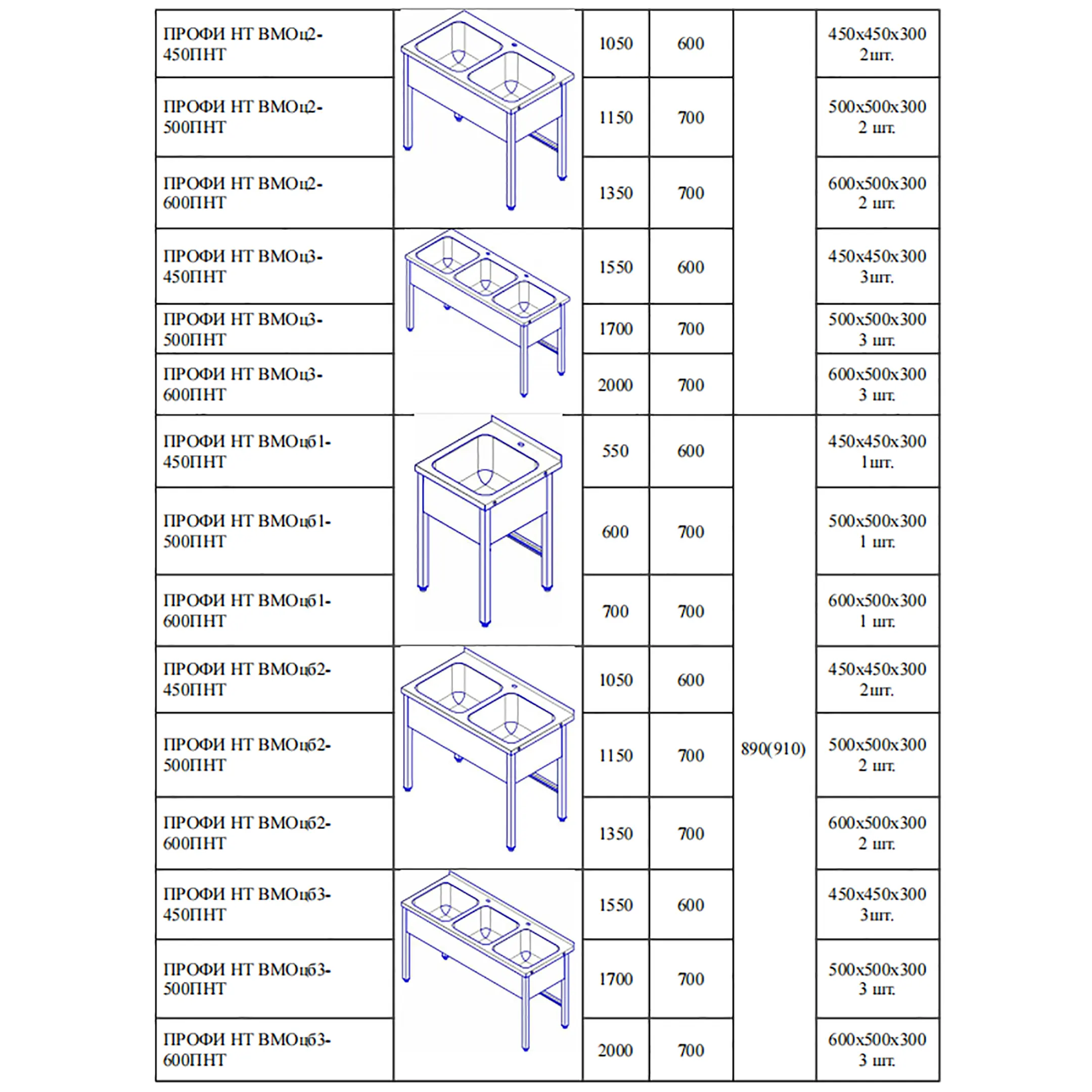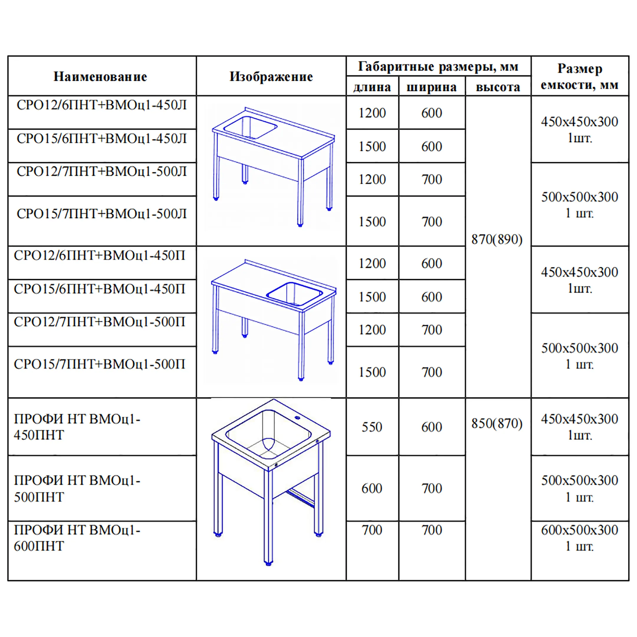 Ванна моечная цельнотянутая ВМОцб3-450-01 ПНТ
