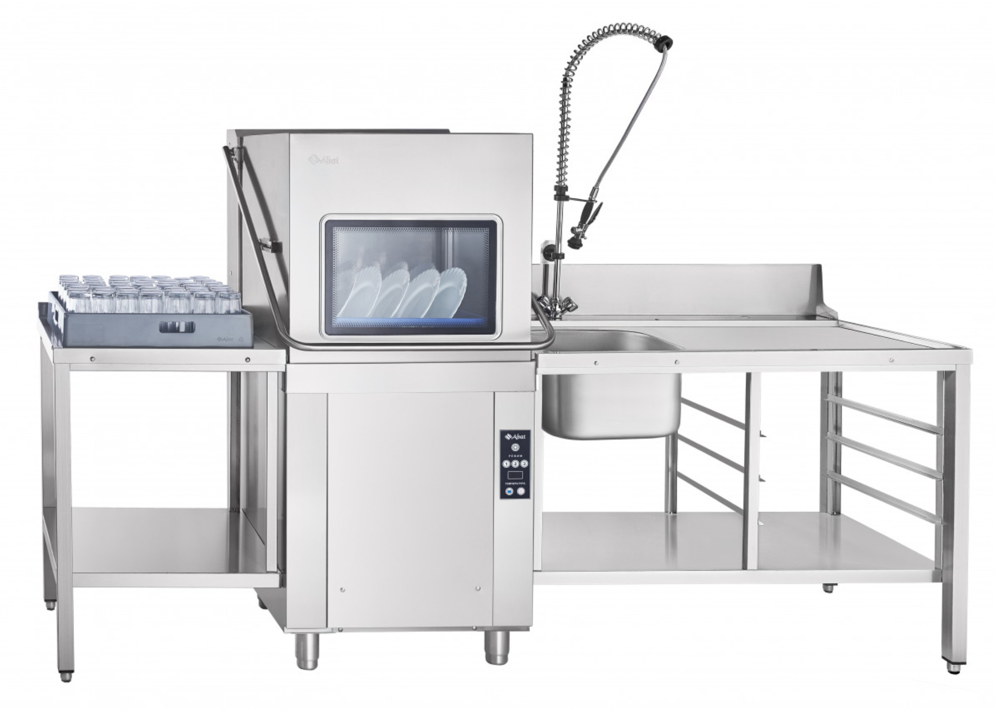 Стол модели СПМП-6-3 условно разделен на две зоны. Первая — это рабочая поверхность для складирования посуды. В ее нижней части предусмотрены направляющие для четырех кассет размером 500х500 мм. Вторая зона состоит из цельнотянутой мойки с душирующим устройством, где посуду предварительно обрабатывают. Объединяет обе зоны функциональная нижняя полка. Используют ее для выкладки посуды и инвентаря, а также хранения моющих средств и текстиля.