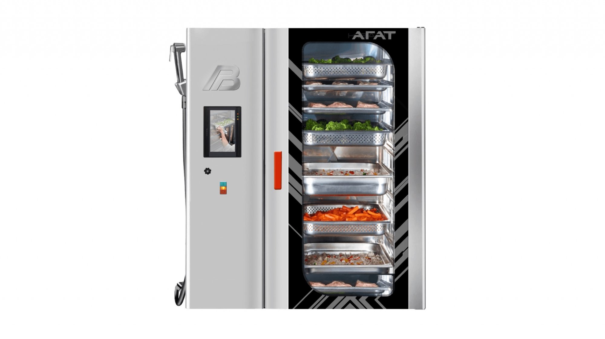 - Оригинальная система распределения воздушных потоков — точное поддержание температуры по всему объему камеры, равномерное приготовление независимо от степени загрузки.