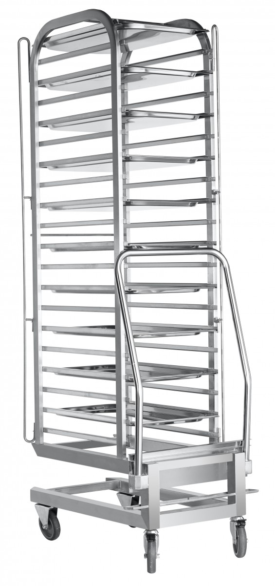 - Тележка-шпилька ТП 20-1/1 в комплекте — под 20 гастроемкостей GN 1/1, продольная загрузка позволяет использовать GN 1/2 и GN 1/3.