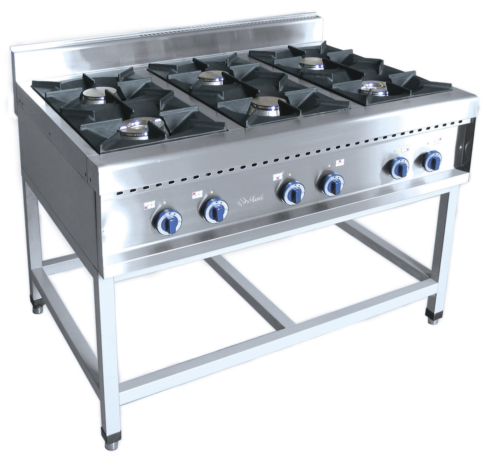 Плита имеет четыре горелки по 5,5 кВт и две мощные горелки "двойная корона" по 7,5 кВт.