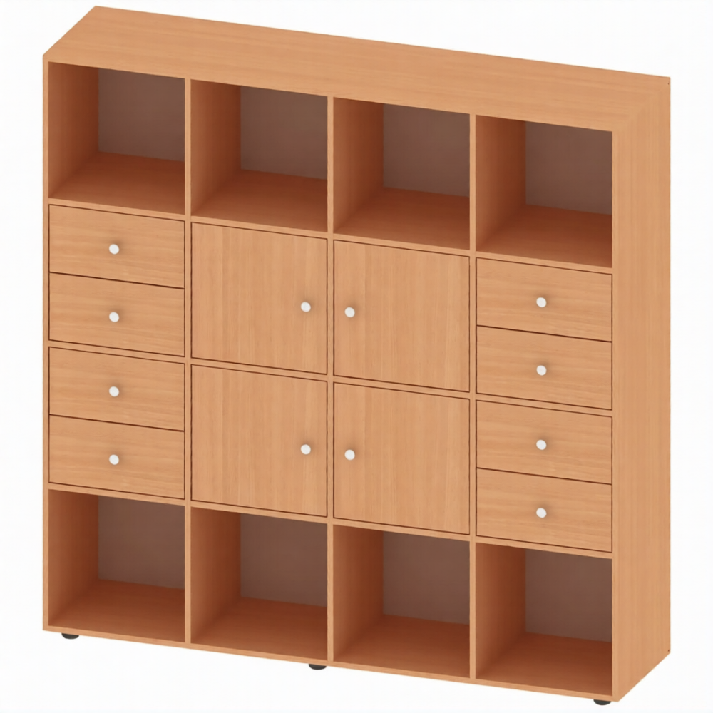 Стеллаж полуоткрытый многосекционный 16 секций СТ-ТР-7, Бук Бавария Светлый