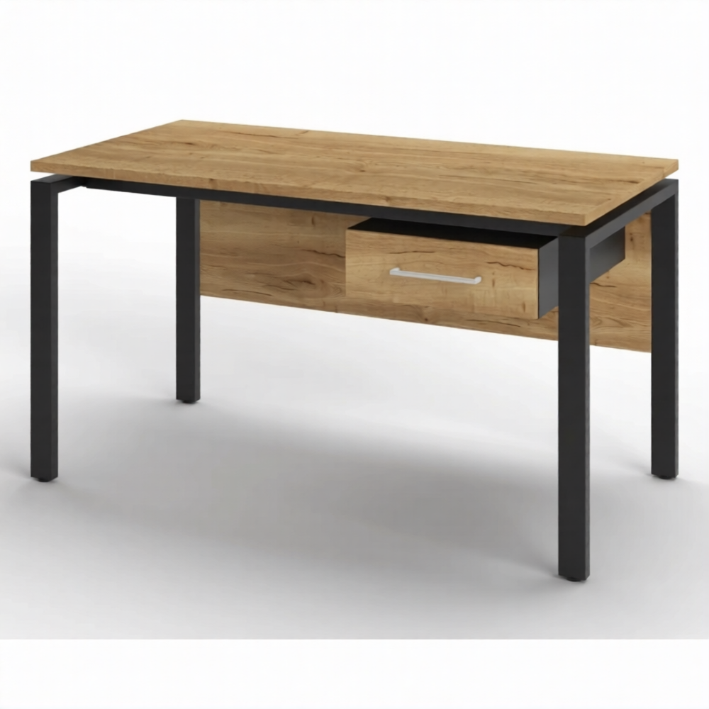 Стол рабочий 1 ящик СрТ-21 (тип 1) (1400х600х750) (столешница ЛДСП дуб вотан, каркас черный)