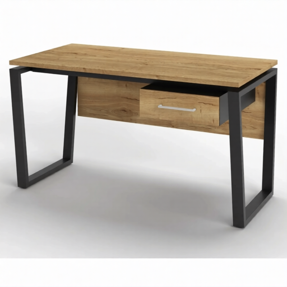Стол рабочий 1 ящик СрТ-21 (тип 3) (1400х700х750) (столешница ЛДСП дуб вотан, каркас черный)