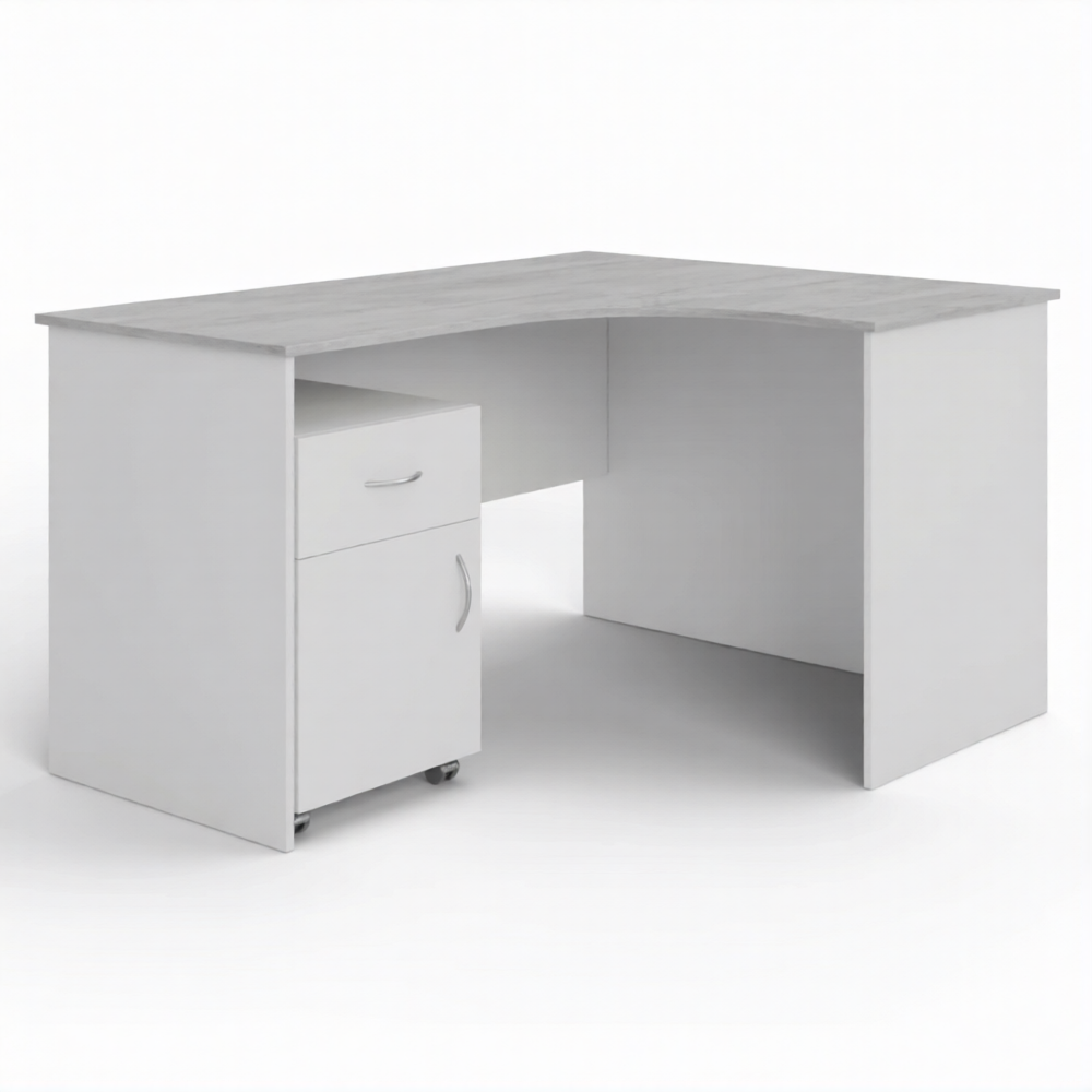 Стол рабочий угловой с тумбой подкатной СУ-1 правый (корпус ЛДСП белый, столеш. ЛДСП дуб канадский)