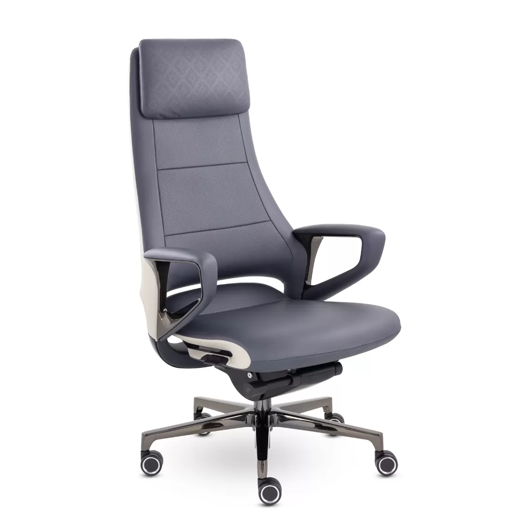 Кресло EPIK A-001-GB L201-271 (темно‑синий/светло‑серый) — высококлассное кресло руководителя с обивкой из натуральной кожи в стильной цветовой комбинации. Модель сочетает эргономичный дизайн, надежную конструкцию и продуманные механизмы регулировок, что обеспечит комфортную и продуктивную работу в офисе или кабинете.