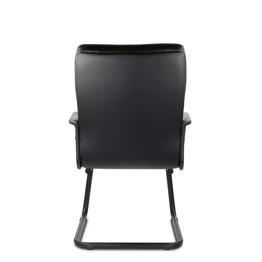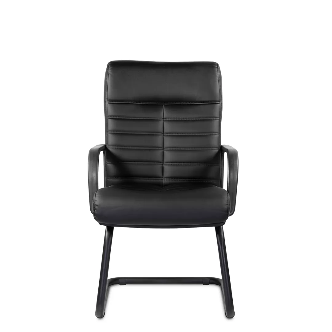 Массивное кресло с горизонтальными прострочками по ширине всей спинки и углублением. Пластиковые подлокотники обеспечат комфортную посадку на весь рабочий день. Модель отлично подойдет для приемной, переговорной в строгом стиле.