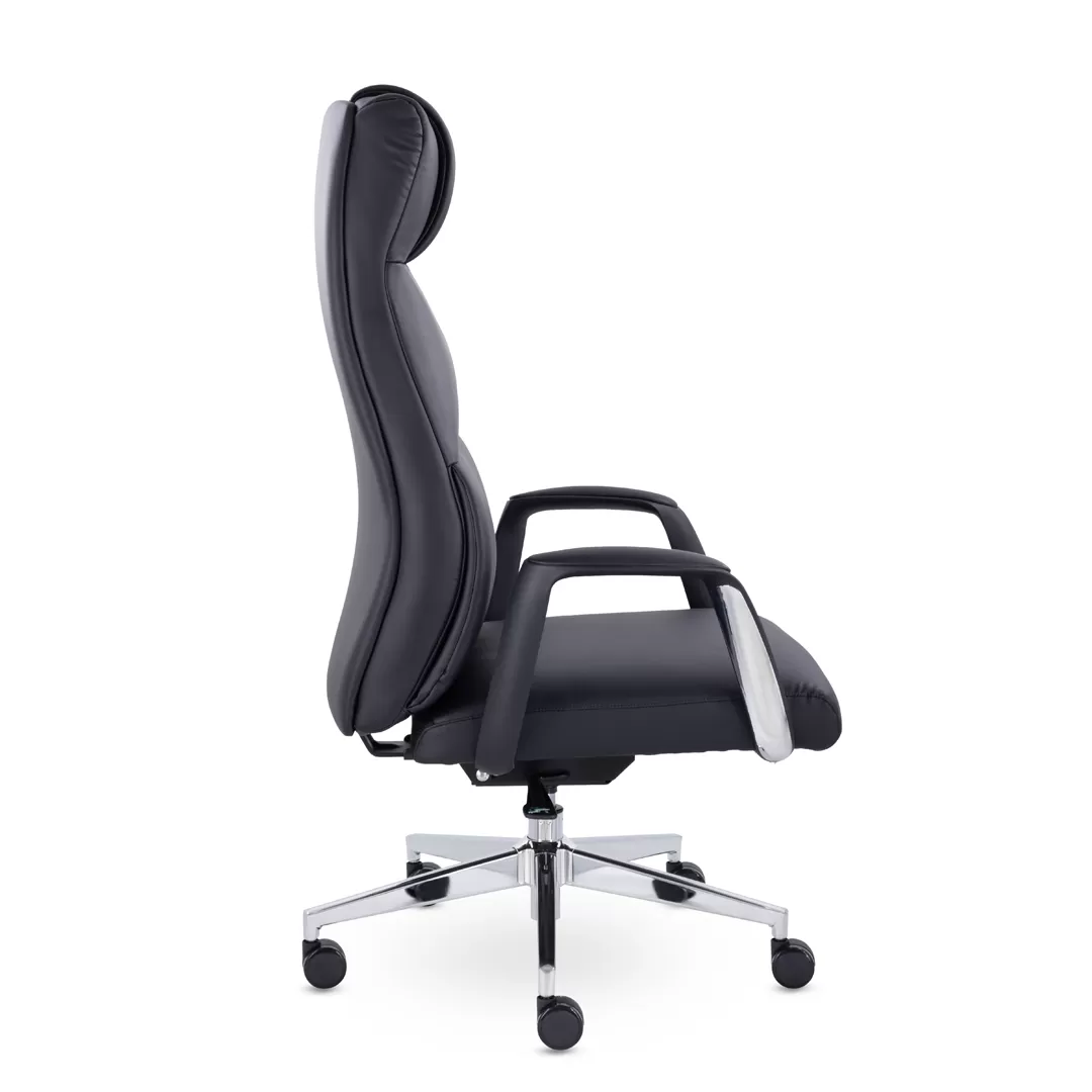 - Хромированные элементы — крестовина и детали декора придают креслу презентабельный вид и устойчивость.