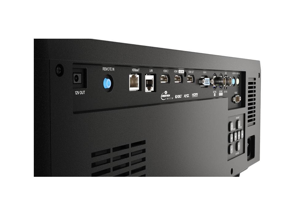 Инсталляционный, лазерно-фосфорный, с встроенным моторизованным объективом 1,25-2,0:1, Технология 1 DLP, 0,67", Яркость 8 100 ANSI, Разрешение WUXGA (1920х1200), Контрастность 3 000 000:1, Вес 13,7 кг, VGA (D-sub 15-pin) In; HDMI in; HDMI out; HDBaseT; LAN (RJ45); Audio-Out (Mini-Jack); Audio-In (Mini-Jack); USB Type A; 3D sync In (BNC); 3D sync Out (BNC); RS232C; Wired Remote in (Mini Jack)