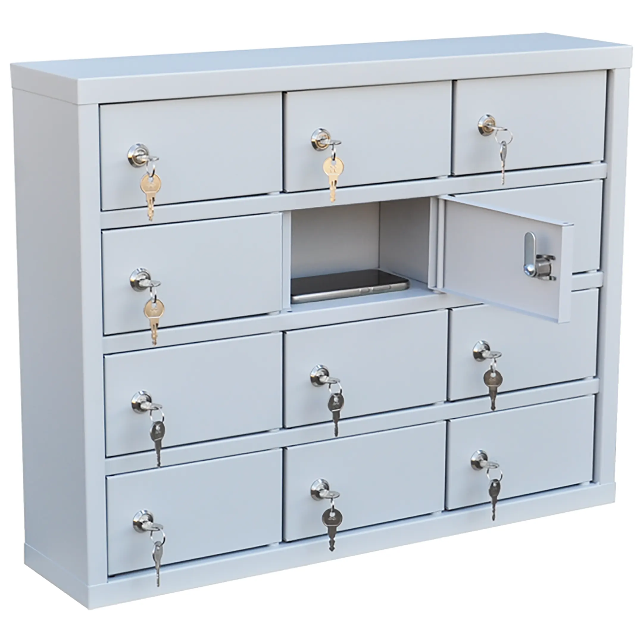 Шкаф для мобильных телефонов ШДМ-12 — это компактное и экономичное решение для организованного хранения мобильных устройств в условиях малых групп и ограниченного пространства. Модель идеально подходит для кабинетов специалистов, малых офисов, начальных классов или зон индивидуальной работы, обеспечивая базовый уровень защиты личных гаджетов и поддержание порядка.