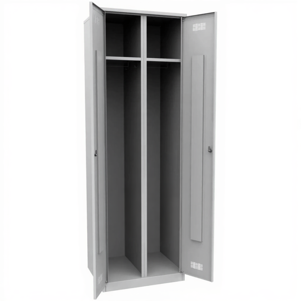 • Шкаф для одежды сварной двухстворчатый предназначен для хранения верхней или рабочей одежды, сумок и документов в помещениях закрытого типа.