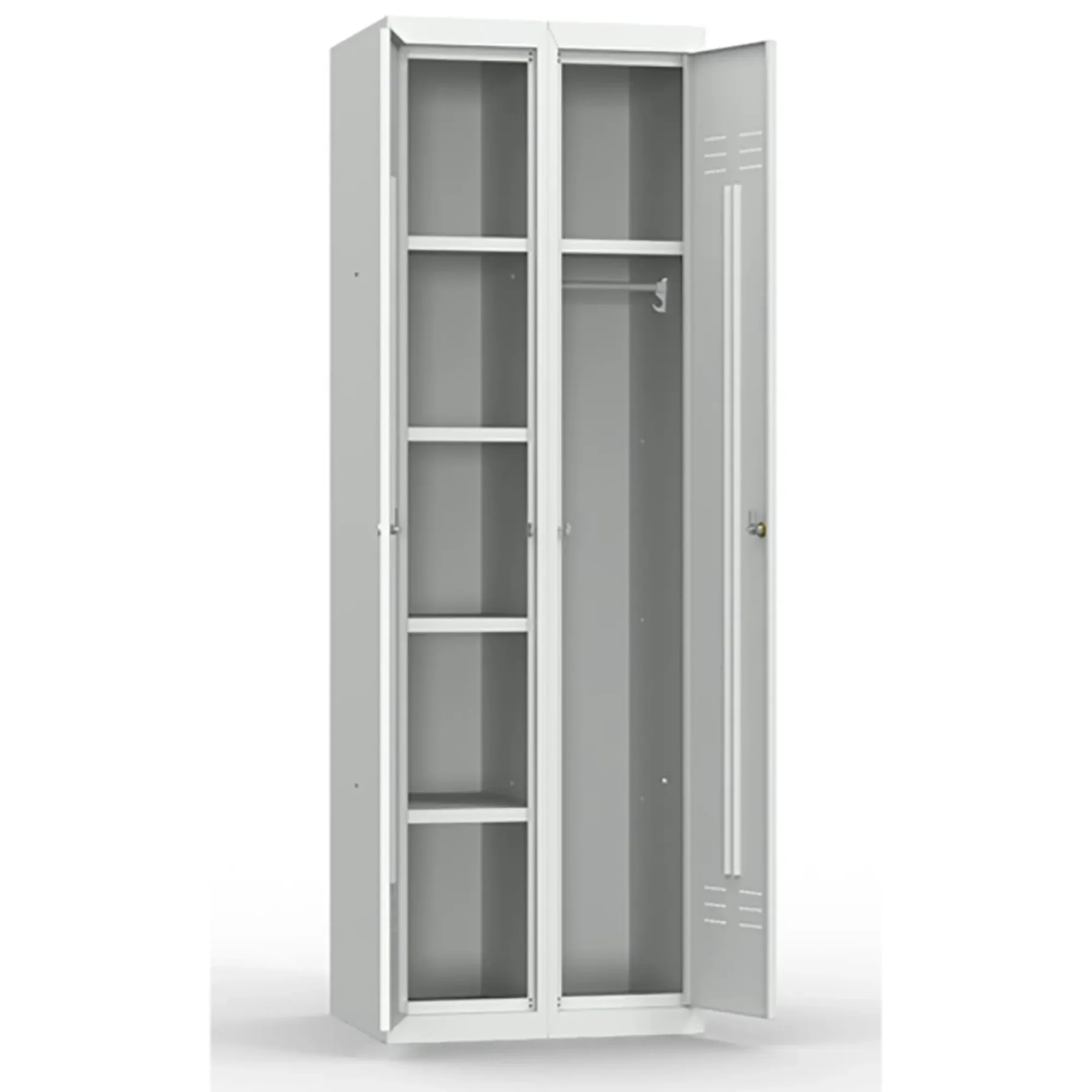 - Универсальность применения в различных сферах — помимо учебных заведений, модель успешно используется в медицинских кабинетах, офисных помещениях, спортивных комплексах и других учреждениях, где требуется компактное и безопасное хранение хозяйственного инвентаря.