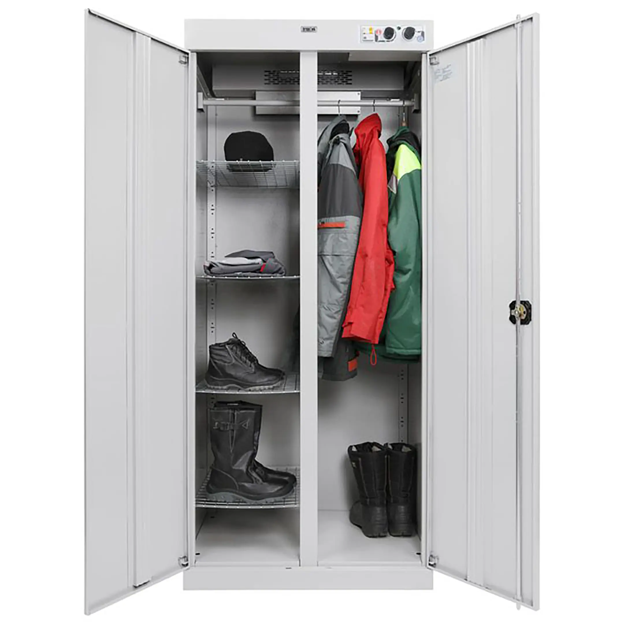 Шкаф сушильный ШС Циклон 1985 — это производительное и надежное оборудование для эффективной сушки рабочей и спортивной одежды, спецодежды, обуви и инвентаря на предприятиях, в медицинских, спортивных учреждениях и учебных заведениях. Модель обеспечивает быструю, равномерную сушку благодаря интенсивной циркуляции теплого воздуха, способствуя оперативному устранению влаги, запахов и поддержанию гигиены.